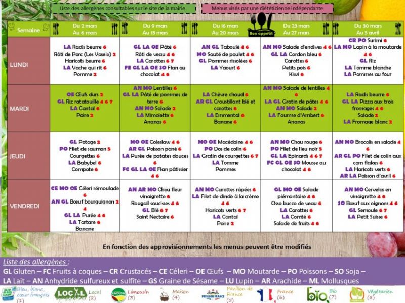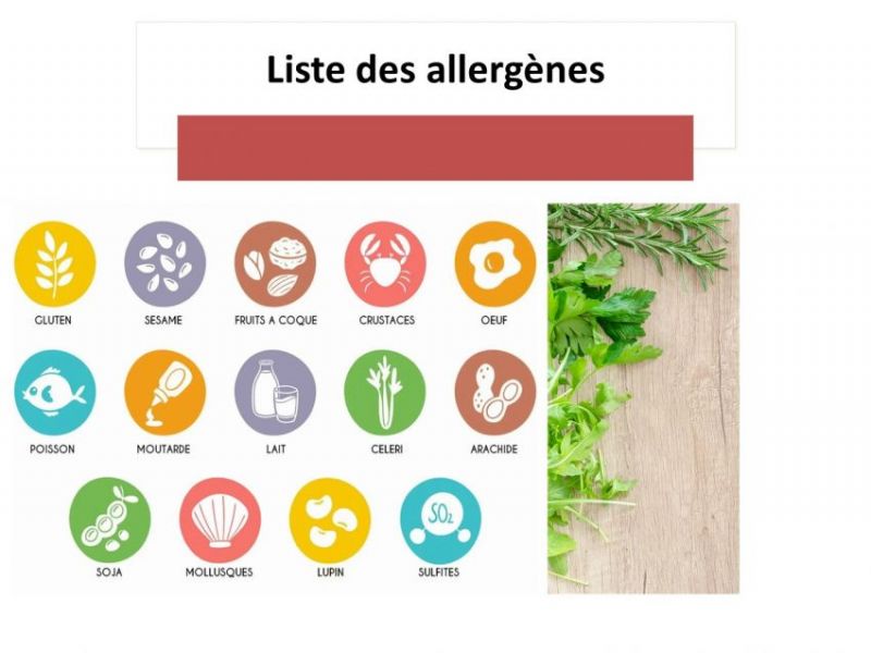Selon le Code de la consommation et la réglementation européenne, les 14 allergènes devant obligatoirement être indiqués sont :